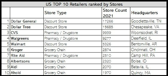 There are different ways to look at the US grocery chains which in turn give different classifications but no matter the criteria, Kroger and Albertsons are among the top 10 grocers in the US.